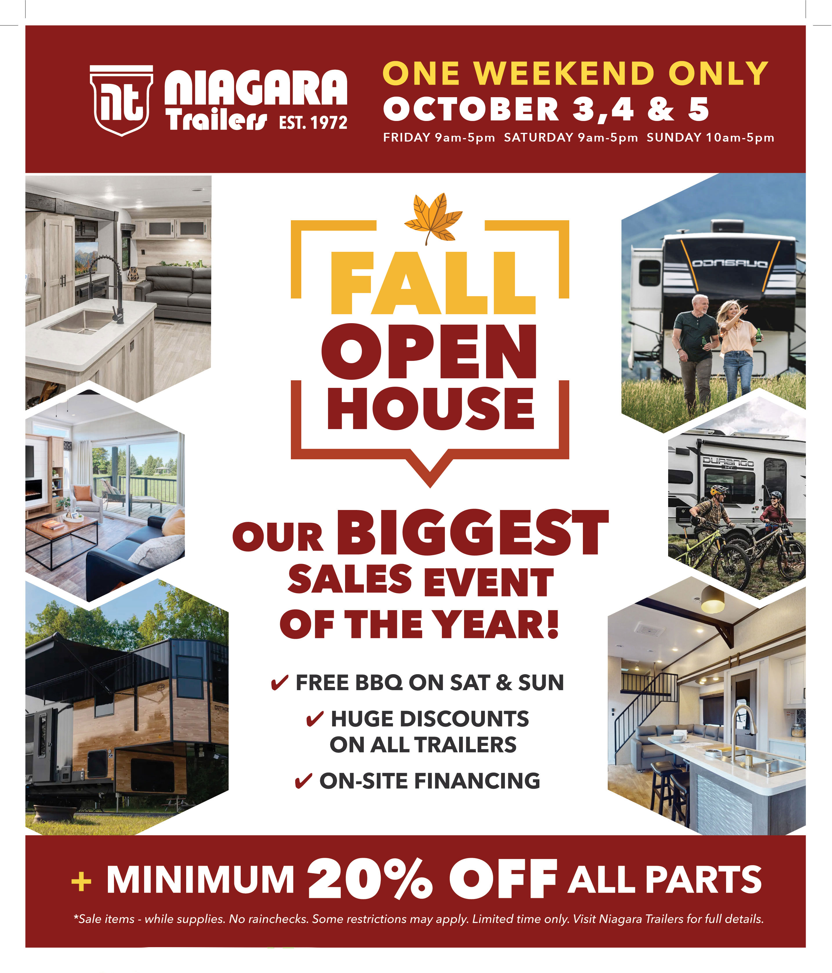 Our BIGGEST sales event of the year! Take advantage of special Open House discounts on trailers and parts. Plus, FREE hotdogs Saturday and Sunday.